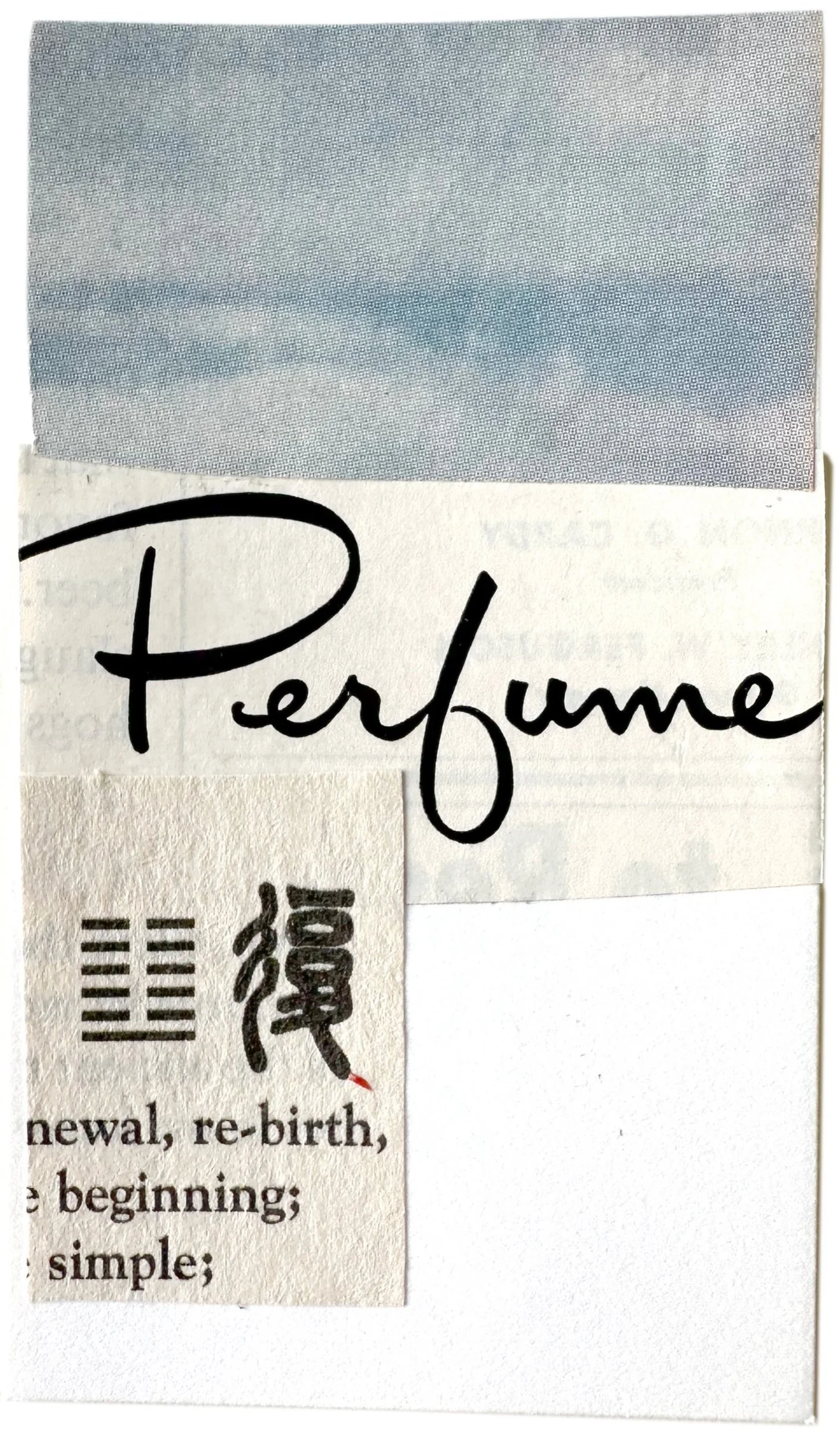 This is a series of Offerings — small collages with intuitive messages, written in situ, and left behind at specific archeological sites.